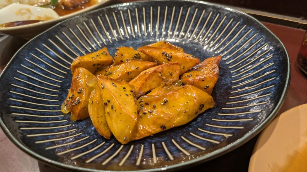 最後は飴芋?だったかな? 表面がカチカチの飴でコーティングされた大学芋ですね