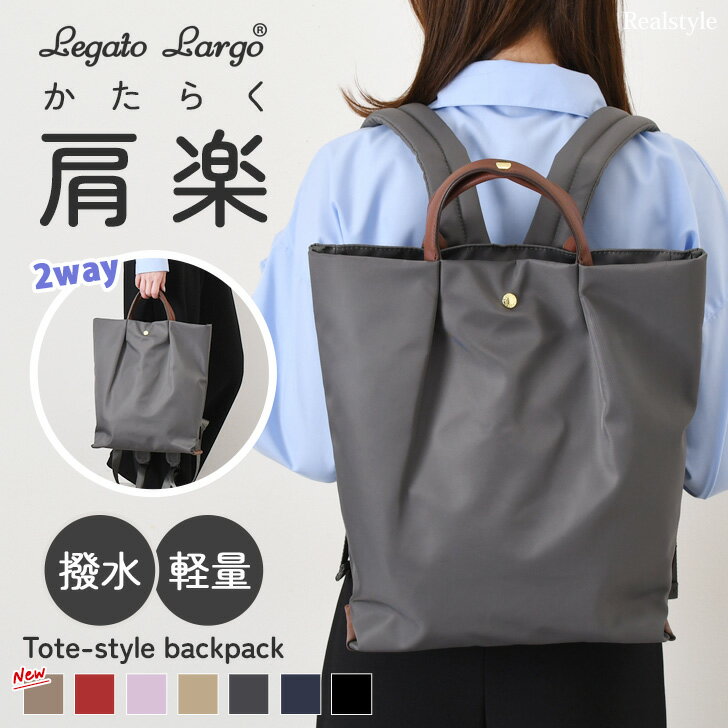Legato Largo レガートラルゴ 肩楽 撥水 トート型 リュック トートバッグ 2way LH-L0006 リュックサック レディース 大容量 軽量 a4 通勤バッグ 会社 ビジネス 通学 旅行 デイパック バッグ トートバッグ 多収納 シンプル 軽い かわいい ファスナー付き 2512ss