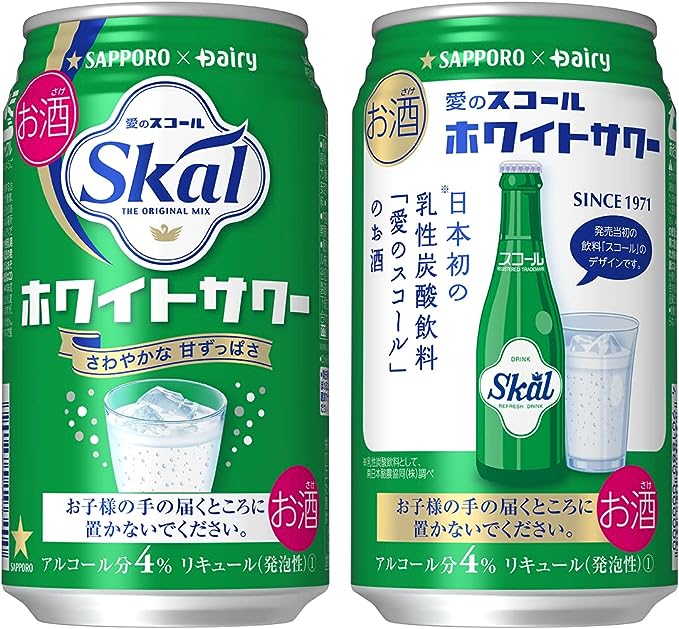 スコールとはデンマーク語で「乾杯」という意味で、キャッチコピーは「愛のスコール」。 脱脂乳をベースにした発酵乳を独自製法で発酵、炭酸水を加えた炭酸飲料。