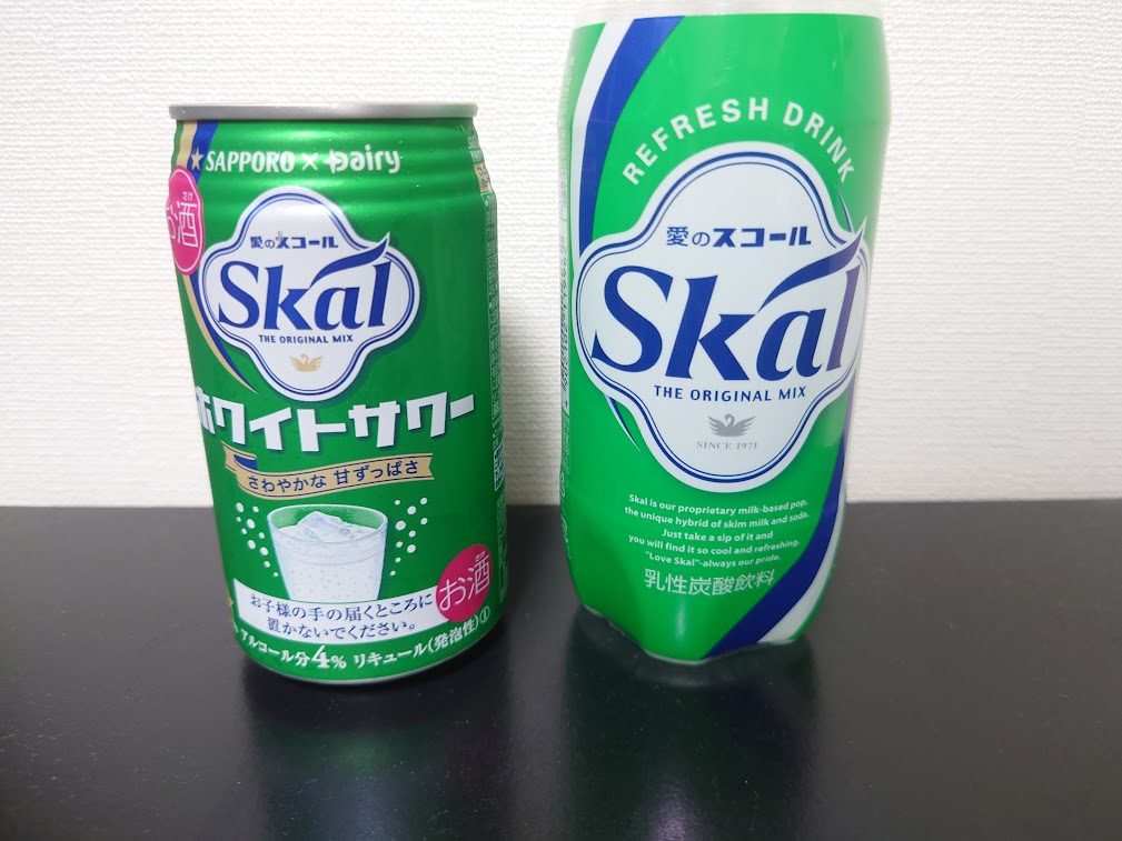 左がチューハイのスコール、右のペットボトルがジュースのスコール
