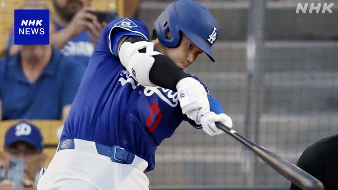 本日、ロサンゼルス・ドジャースの大谷翔平選手が、オープン戦初打席でホームランを放ちました。対戦相手はロサンゼルス・エンゼルスで、先発投手は花巻東高校の先輩である菊池雄星投手でした。大谷選手は1番・指名打者として出場し、初回の第1打席でフルカウントから外角高めの約151キロの直球を左翼方向へ流し打ち、スタンドに運びました。