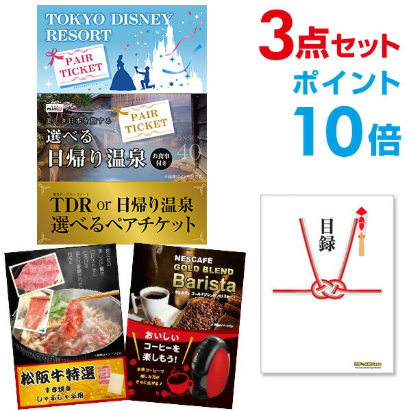 【超豪華 景品3点セット】【ポイント10倍】選べるディズニーor日帰り温泉ペアチケット 、松阪牛等 目録 全てA3パネル付 二次会 景品セットです。