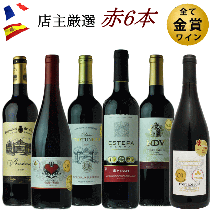 全て金賞受賞 赤ワイン 6本セット g23v06 ワイン セット 送料無料 ワインセット 福袋 飲み比べ