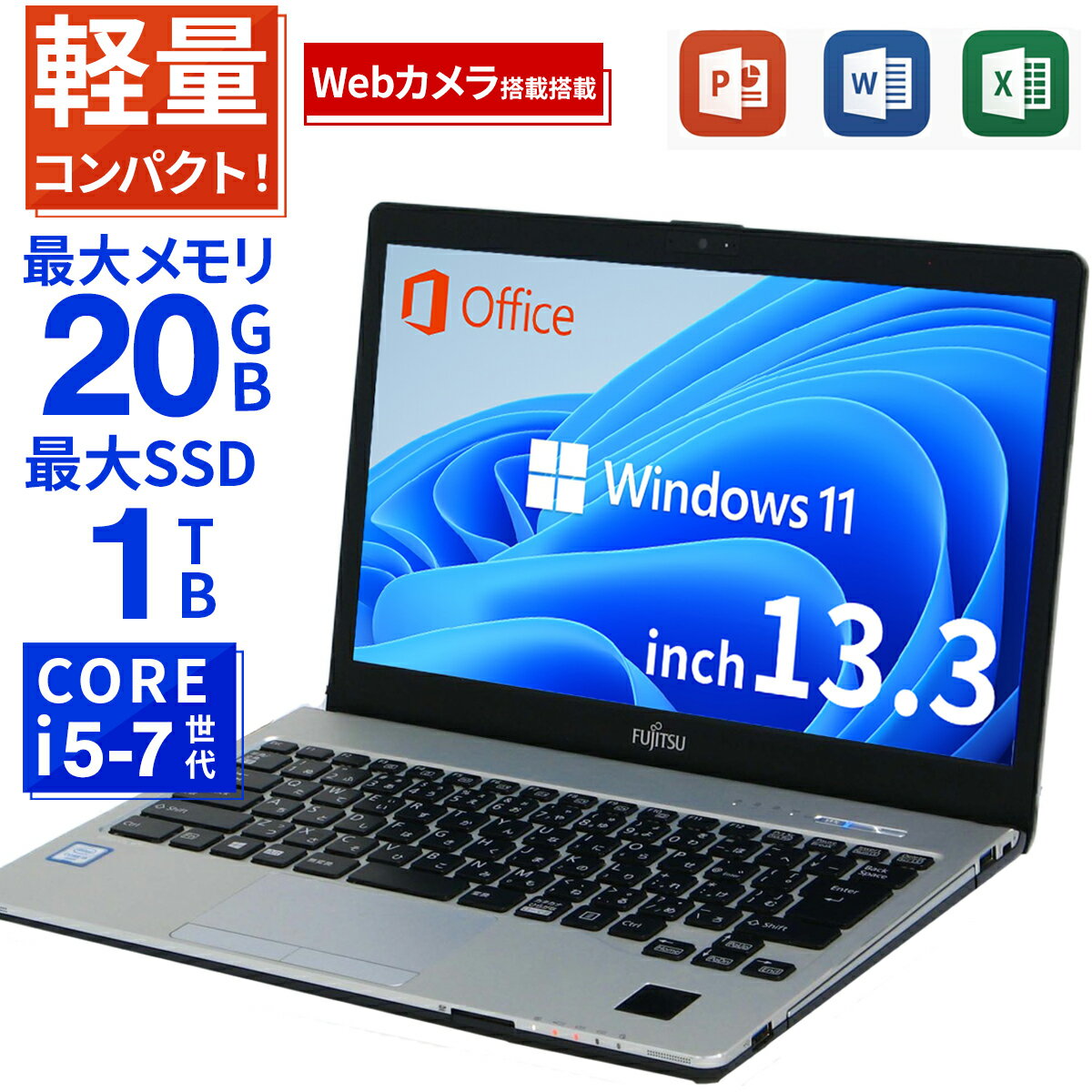商品特徴 【 WEBカメラ 】ノートパソコン 中古 中古パソコン 12.5~13.3インチ SSD128GB メモリ8GB Core i5 第7世代 WPS Office付き Windows11 富士通 FMV LIFEBOOK S937 中古ノートパソコン PC パソコン 中古ノートPC 中古ノート 最大SSD1TB 最大メモリ16GB 商品名 富士通 FMV LIFEBOOK S937 Core i5第7世代WPS Office付きの軽量ノートパソコン! ディスプレイ 13.3インチワイド⇒大画面でFULL HD の高画質!! 搭載OS Windows11 Pro 64bit⇒最新OS搭載! CPU Intel Core i5-7200U⇒第7世代の優れもの! ストレージ SSD128GB~1TBオプションで変更可能 メモリ 最大メモリ20GB ⇒複数作業も重い処理も問題なし! WEBカメラ 搭載 DVDドライブ 非搭載 テンキー 非搭載 外部接続端子 USB3.0有線LANHDMI端子 保証について 30日間修理交換保証(レビュー記入で180日間延長) 付属品 ACアダプター新品有線マウスPCスタンドWPS Office2 ライセンスカード 注意事項 バッテリーは消耗品のためバッテリーの劣化は保証対象外となります。