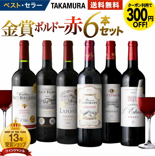 送料無料 第165弾 リアルワインガイドで最高評価A+獲得! 金賞の中の金賞を厳選 タカムラ自慢の 金賞ボルドー 6本 赤ワイン セット (追加6本同梱可) 飲み比べ ギフト [T]