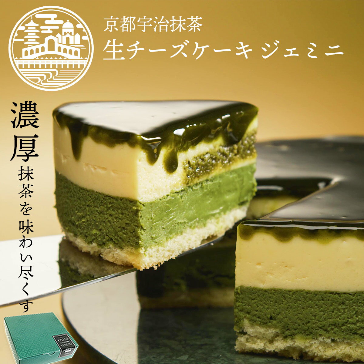 京都宇治抹茶生チーズケーキ ジェミニ 京都ヴェネトで人気No.1のチーズケーキ。