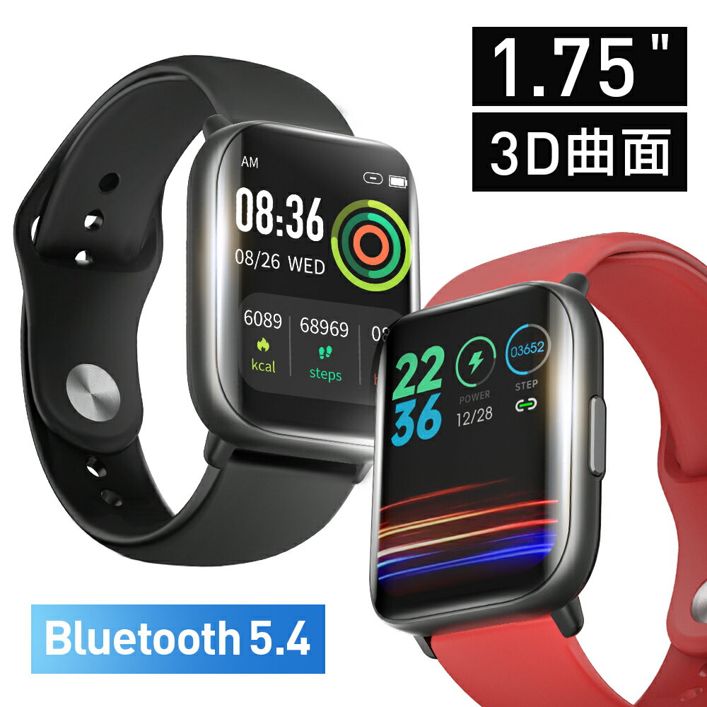 【クーポンで最安2275円】「楽天1位」スマートウォッチ 1.75インチ大画面 皮膚温変動測定 IP68防水 心拍計 歩数計 血中酸素 GPS連携 曲面ガラス採用 レディース メンズ 男女兼用 腕時計 日本語 着信通知 睡眠検測 アラーム 時計 腕 軽量 iphone 対応 android 対応
