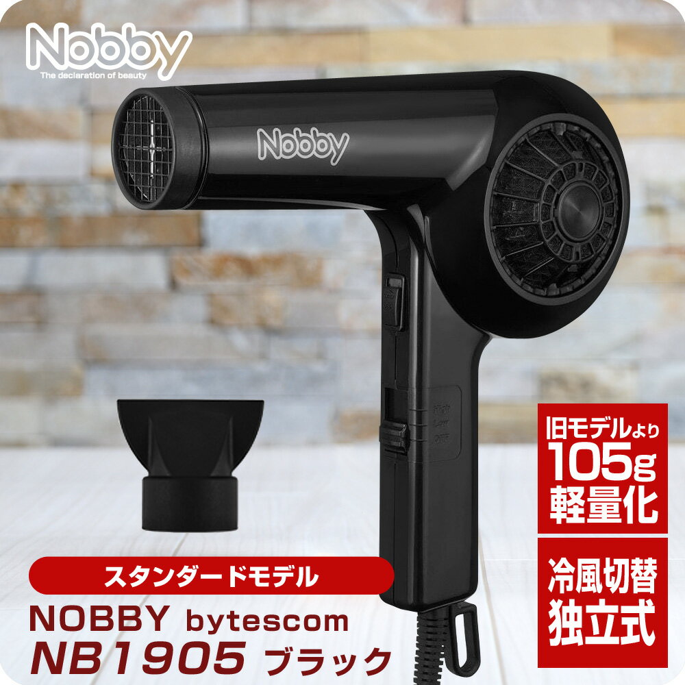 ・コード含む)/395g(コード別本体のみ) 電源 :AC100V/50/60Hz 消費電力:1200W 温風温度:115℃(周囲温度 30℃の場合、High-Hot使用時) スイッチ:切替スイッチ:High/Low/OFF+即冷スイッチ(スライドロック式) 電源コード:3.0m 付属品:セットフード(1個) 関連商品 ■Nobby ヘアー ドライヤー NB1905■ NB1905 ブラック>
