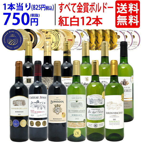 ワイン ワインセットすべて金賞フランス名産地ボルドー赤白12本セット (赤6本+白6本) 送料無料 紅白 ギフト ^W0UK36SE^