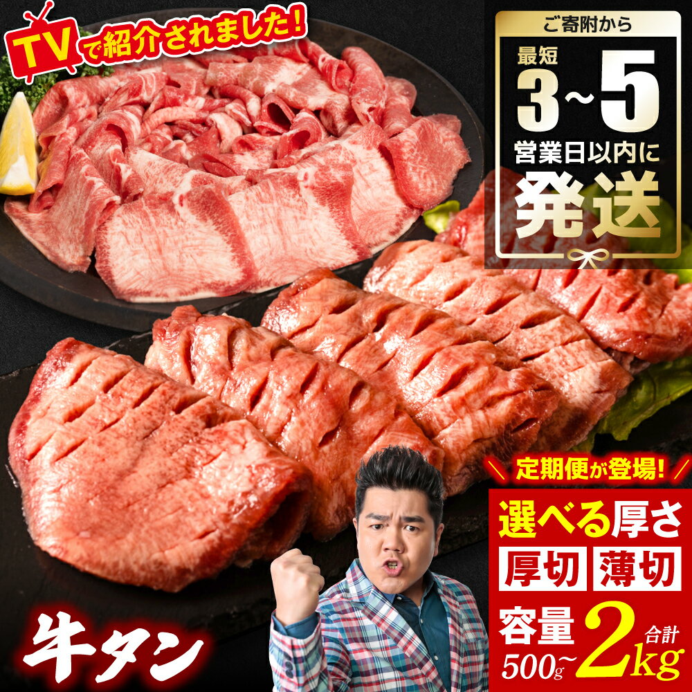 ・薄切り牛タン 2kg (厚切り 500g×2パック、薄切り 250g×4パック)