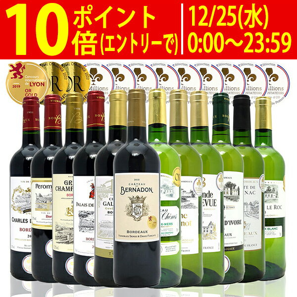 ワイン ワインセットすべて金賞フランス名産地ボルドー赤白12本セット (赤6本+白6本) 送料無料 紅白 ギフト ^W0UK38SE^