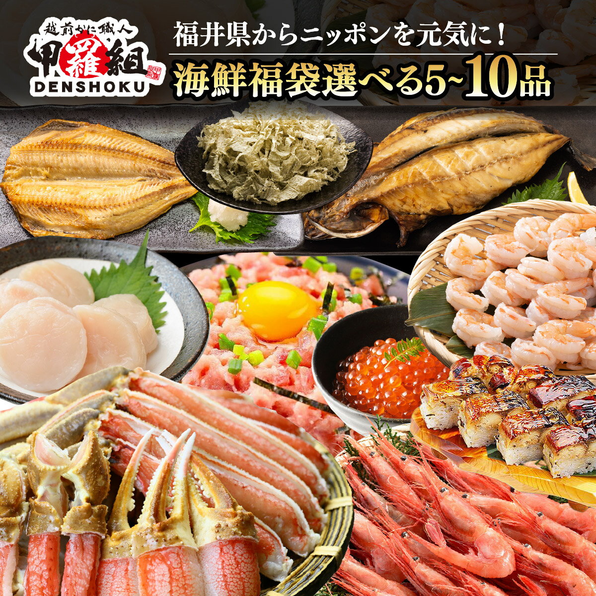 ★大人気だった10種が復活★ 豪華福袋がさらに豪華になって再登場しました! 「ニッポンを元気に!」を合言葉に、大人気海鮮問屋「甲羅組」の中でも特に人気商品をガッツリ詰め込んだ豪華海鮮福袋をつくりました! 通常よりもかなり盛沢山になっておりますので、絶対に後悔させません! 敦賀市内の水産加工場にて商品企画