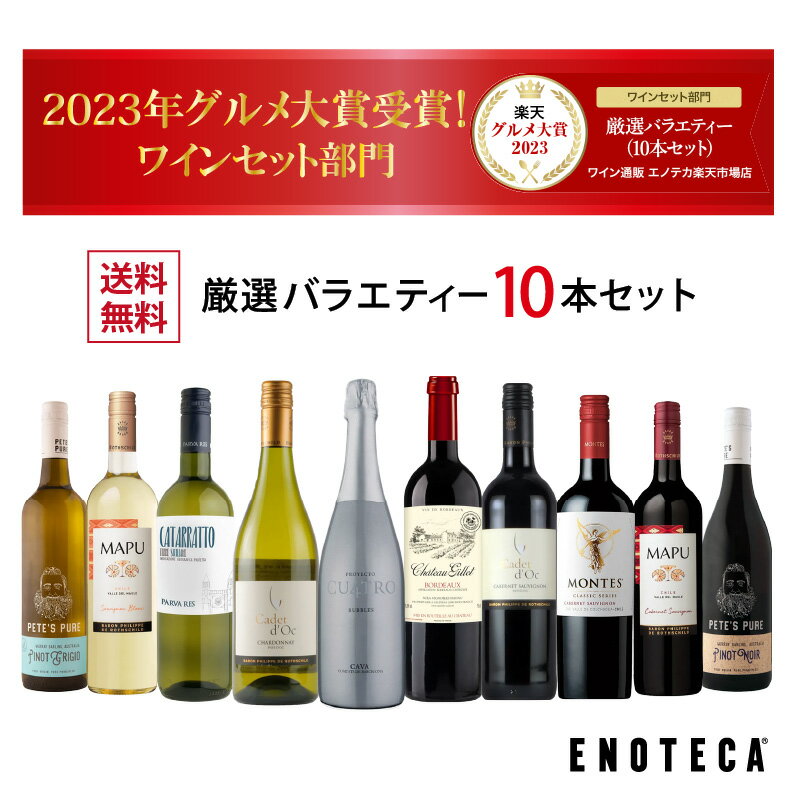 エノテカ売れ筋No.1!厳選バラエティー10本セット PP3-2 [750mlx10] (赤・白・泡 10本)ENOTECA 楽天グルメ大賞 2018・2023「ワインセット」部門受賞! ミックス ギフト プレゼント