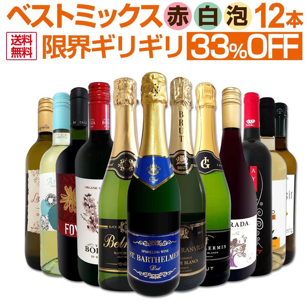 ・ソーヴィニョ1,650円豚バラ軟骨 400g 冨士ハム1,112円自信があります! とにかく凄い!超厳選のベストミックス赤白泡など12本! 『何を買っていいか分からない』『安くて美味しければなんでも』 『毎日飲みたい!』『パーティーでワインをお手軽に揃えたい』 『色んなワインを飲んでみたい』『日頃の食卓を華やかにしたい』 そんな皆様に、是非ともオススメ!迷ったらとにかくこのセットを買ってみて下さい! 通常よりも5,863円お得! 単品合計価格17,413円(税込)のところ 33%OFFの特別セット価格11,550円(税込)! 激得の1本あたり963円(税込)で ちょっと良いワインばかりのハイクオリティ12本! 当店一押しワインばかりを12本揃えた充実の内容。