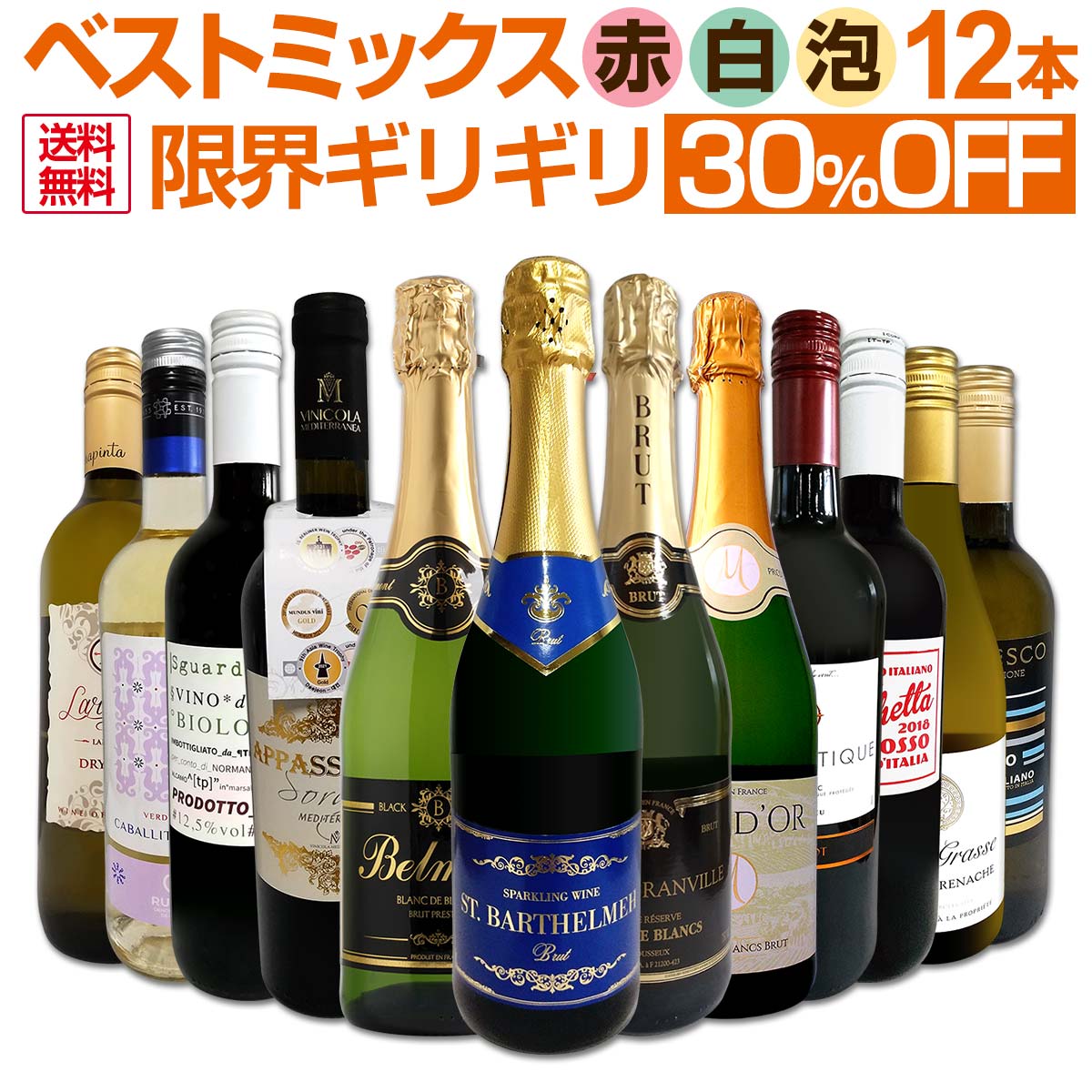 ・ルスティカ 700g594円赤ワイン フルボディ セット ワインセット 赤10,450円自信があります! とにかく凄い!超厳選のベストミックス赤白泡など12本! 『何を買っていいか分からない』『安くて美味しければなんでも』 『毎日飲みたい!』『パーティーでワインをお手軽に揃えたい』 『色んなワインを飲んでみたい』『日頃の食卓を華やかにしたい』 そんな皆様に、是非ともオススメ!迷ったらとにかくこのセットを買ってみて下さい! 通常よりも5,060円お得! 単品合計価格16,610円(税込)のところ 30%OFFの特別セット価格11,550円(税込)! 激得の1本あたり963円(税込)で ちょっと良いワインばかりのハイクオリティ12本! 当店一押しワインばかりを12本揃えた充実の内容。