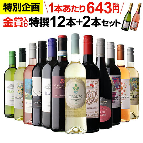 【200円OFFクーポン利用で1本あたり629円(税込)】金賞入り特選ワイン12本+2本セット(合計14本) 290弾 ワイン ワインセット 赤白 ワインセット 白 辛口 浜運A【ポイント対象外】