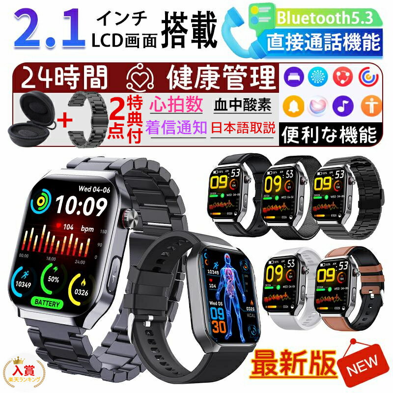 ) 【2.10インチ大画面&音楽再生】スマートウォッチ本体の精緻な工芸が渾然に一体設計となり、2.10インチ全画面タッチパネルを採用し、画質がより鮮明に大画面で高精度、通知や文字を一目瞭然に表示され、鮮やかな色合いと読みやすさを実現しました。