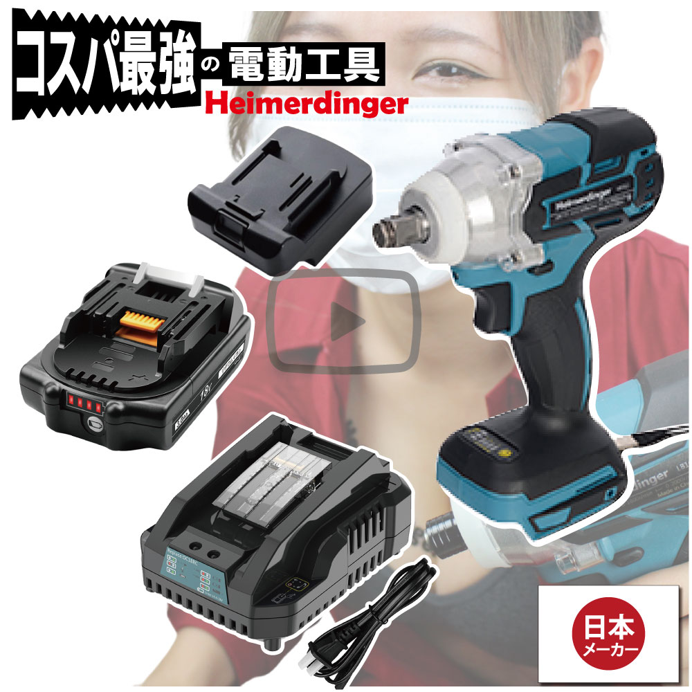 インパクトレンチ セット 防滴 防塵 全て マキタ &Hikoki互換 本体+3.0Ah電池+急速充電器 ブラシレス バッテリー 国内正規 18V Heimerdinger 送料無料