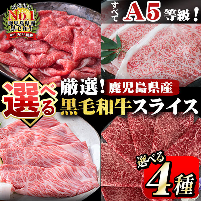 【ふるさと納税】【4種から選べる!】全てA5等級!黒毛和牛スライス(肩ロース1,000g・赤身1,000g・サーロイン800g・特選1,200g) 鹿児島県産 黒毛和牛 国産 肉 牛肉 赤身 霜降り すき焼き しゃぶしゃぶ 冷凍 小分け ランキング 人気 【カミチク】b0-163