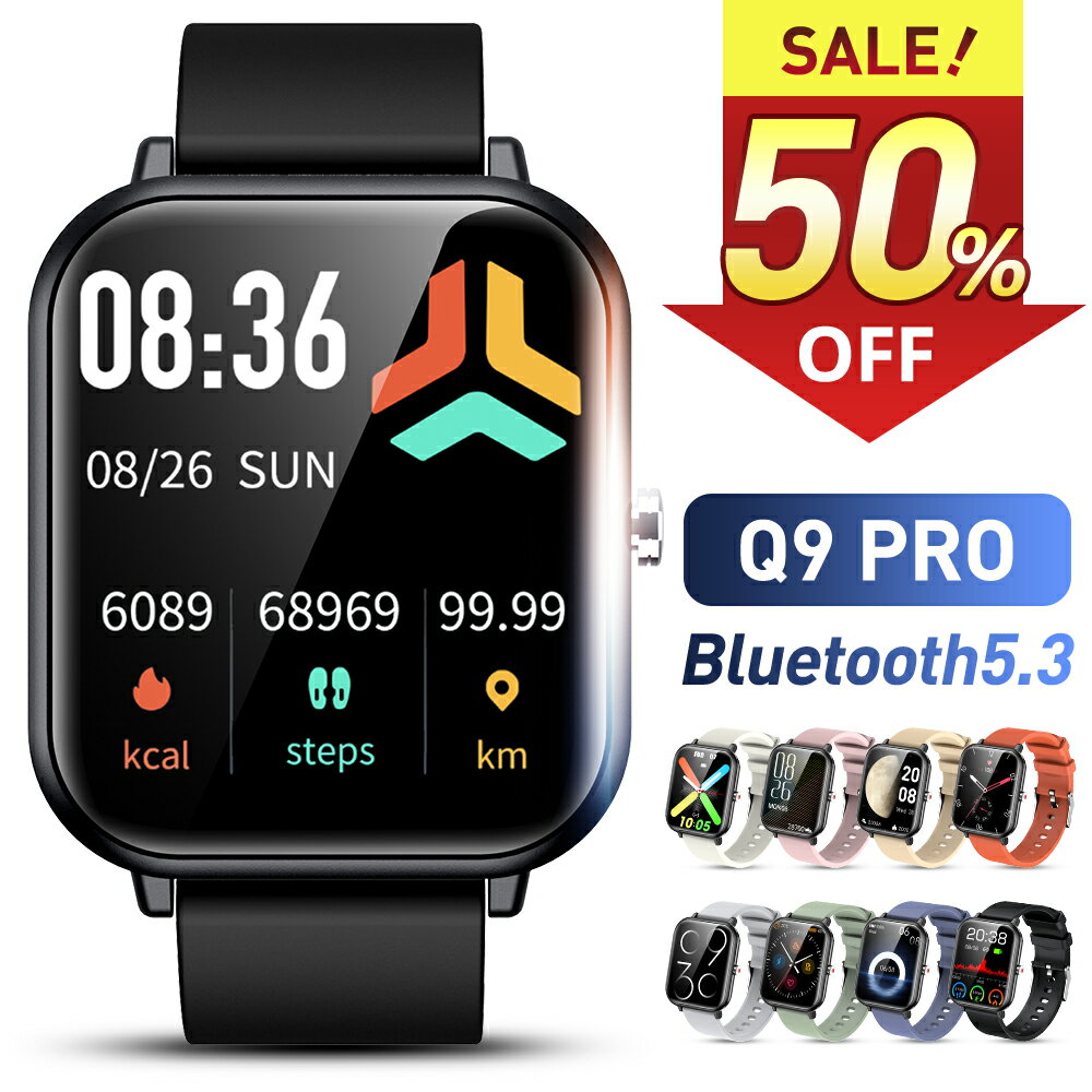 スマートウォッチ Q9PRO 型番 Q9PRO カラー ブラック、ベージュ、グレー、ブルー、レッド、ピンク ディスプレイ 1.9インチ大画面 防水レベル IP68 本体重量 38g 解像度 240×280 操作 タッチ操作 Bluetooth V5.0 仕様 多機能スマートウォッチ 1.9インチの大字幕高精細なカラースクリーンで、日付表示、歩数、睡眠検測など毎日活動を正確に記録します。