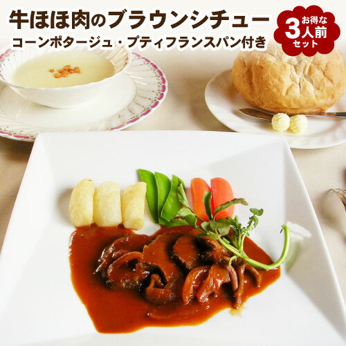牛ほほ肉のブラウンシチュー 200g×3袋 コーンポタージュ 180cc×3袋 まん丸フランスパン 3個 松本の頑固シェフ二人が作る 「美ヶ原高原乳」と 国産のあま~いトウモロコシを使った 『コーンポタージュスープ』 大人から子供さんまで
