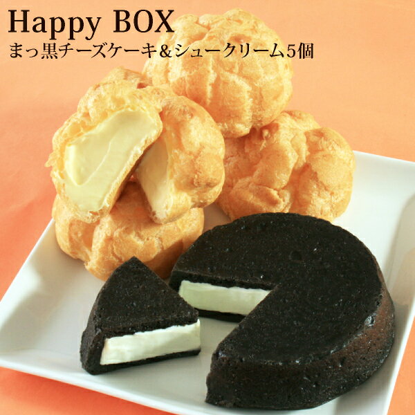 *Happy Box*まっ黒チーズケーキ&Bigシュークリーム5個チーズケーキ シュークリーム スイーツ お取り寄せ 送料込 内祝い 出産祝い 結婚祝い プレゼント ギフトセット 誕生日 バースデー