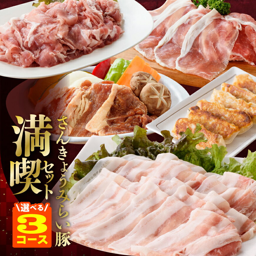 【ふるさと納税】さんきょうみらい豚満喫セット内容量 【基本のセット(Aセット)】肩ロースしゃぶしゃぶ180gウデモモ鉄板焼200gウデモモ味噌漬け200g焼餃子(8個入)2パック生ハム切り落とし120gハンバーグ3個 【精肉セット(Bセット)】バラしゃぶしゃぶ190g肩ロースしゃぶしゃぶ180gウデモモしゃぶしゃぶ200g肩ロース焼肉180gロース生姜焼き180gウデモモ切落し250g 【加工品セット(Cセット)】ウデモモ鉄板焼き200gウデモモ味噌漬け200g生ハム切り落とし120g熟成ウインナー100gハンバーグ4個焼餃子(15個入)1パック水餃子(14個入)1パック 商品説明「さんきょうみらい豚」の「さんきょう」には、参加