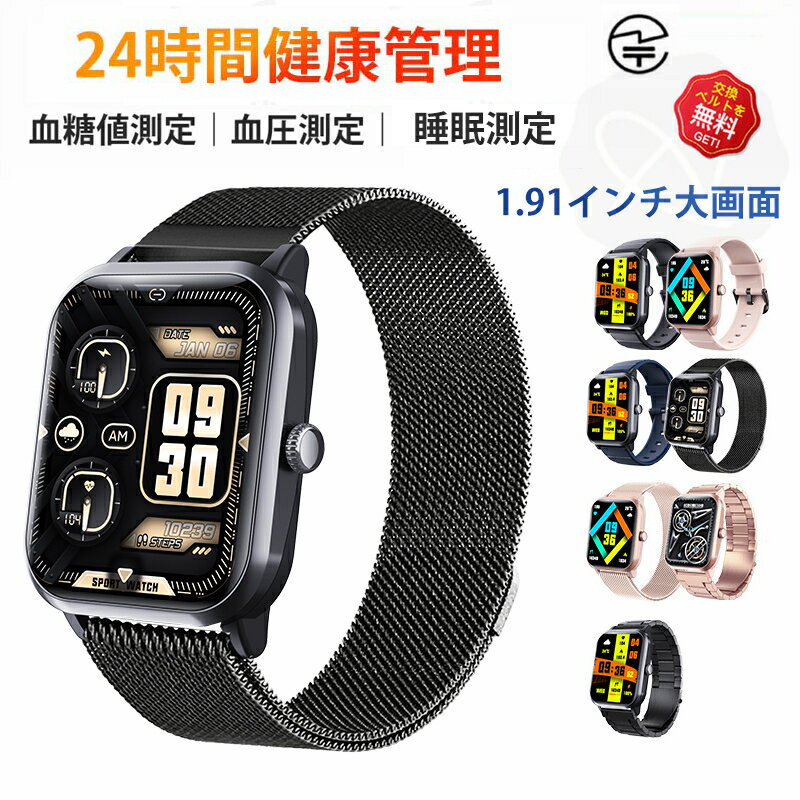 【2026年最新版 】 即納可能! スマートウォッチ 血圧 測定 血糖値 測定 日本製 センサー レディース 1.91インチ 血中酸素 IP67防水 iPhone/Android対応 日本語対応 24時間体温測定 音楽プレーヤー 高精度心拍数 睡眠検測 呼吸率 母の日 ギフト