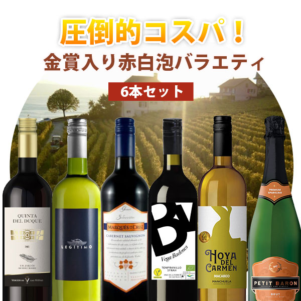 【6本セット送料無料】圧倒的コスパ!金賞入り赤白泡バラエティ6本セット 750ml×6本<ワインセット>※沖縄県は送料無料対象外ミックスセット 飲み比べセット [T.3329.0.SE]